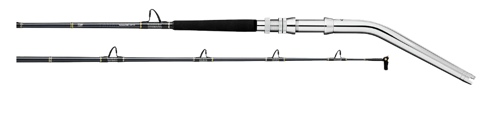 The Tanacom Dendoh Rods are a beautifully designed series of 10 deep drop rods representing the culmination of Daiwa’s offshore “Dendoh Style” rod development. The powerful Glatech Blank Construction sandwiches uni-directional fiberglass between 90º inner and outer layers of graphite. The result is an incredibly resilient blank with the backbone and lifting power needed to control and move strong fish. Daiwa’s popular Powerlift Grip increases comfort and grip while allowing maximum pressure. The Alps Swivel Tip Top Guides avoid unpleasant surprises right at the transom. The Seaguide Aluminum Oxide Ring Guides are strong while allowing minimum resistance whether paying out or retrieving line. The rod is finished with an Alps Anodized Aluminum Curved Butt End and Aluminum Reel Seat. If deep drop fishing is your game then you owe yourself a look at the new Tanacom Offshore Deep Drop Rods. Well-built with quality parts, this series of rod will occupy your rod holders for a long time to come.