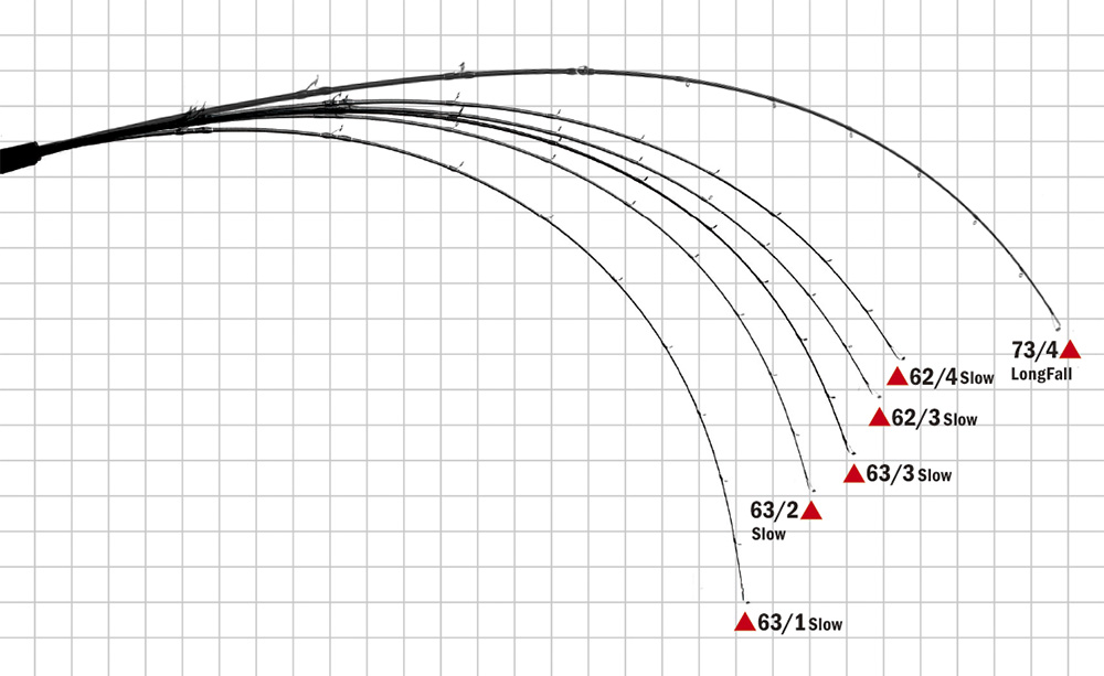 These images are comparison which have been loaded 2Kg weight on tip of Galahad series and fix the end of rod on gimbals. Dotted red line indicate the position of reel foot. 4kg weight have been loaded to the 10power rods additionally. Please reference these images to make sure the characteristic of rods.