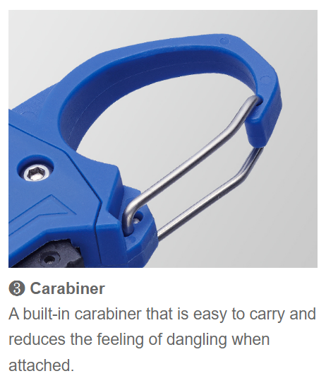 Lightweight and rust-proof reinforced plastic (GFRP) is used for the body material. Furthermore, by integrating the carabiner, which is convenient to carry, with the main body, it can be installed neatly in various places with a less dangling feeling.