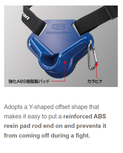 The Golden Mean “GM Pad Mini” is not a compact but simple support pad, but a full-fledged support pad that can handle sudden big targets. The padded part (pad shape) using reinforced ABS resin flexibly responds to the standing position of the angler, and reduces “disengagement of the grip end during use” and “interfering pain when weight is applied”. The belt system adopts a style that can be easily attached and detached with a buckle. The carabiner on the side makes it easy to carry and supports all fishing scenes from shore to offshore.