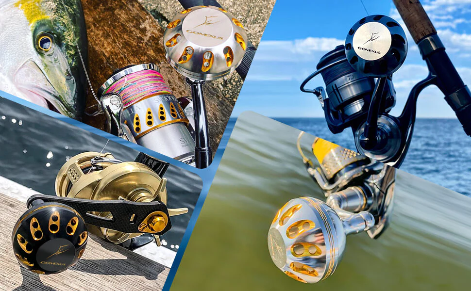 This Gomexus power knob is machined out of one-body aluminum and is designed for an ergonomic grip that reduces fatigue during fighting stripers. The round knob is easy to hold, making the battle more stable and easier. Drainage design, easy to clean with water, not easy to produce a fishy smell.