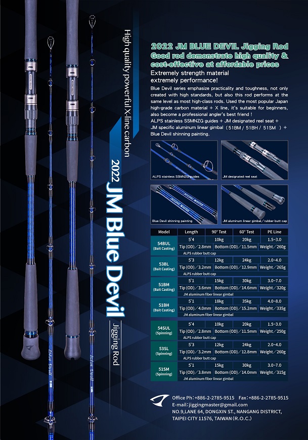 ※Blue Devil series emphasize practicality and toughness, not only created with high standards, but also this rod performs at the same level as most high-class rods. Used the most popular Japan high-grade carbon material + X line, it’s suitable for beginners, also become a professional angler’s best friend!