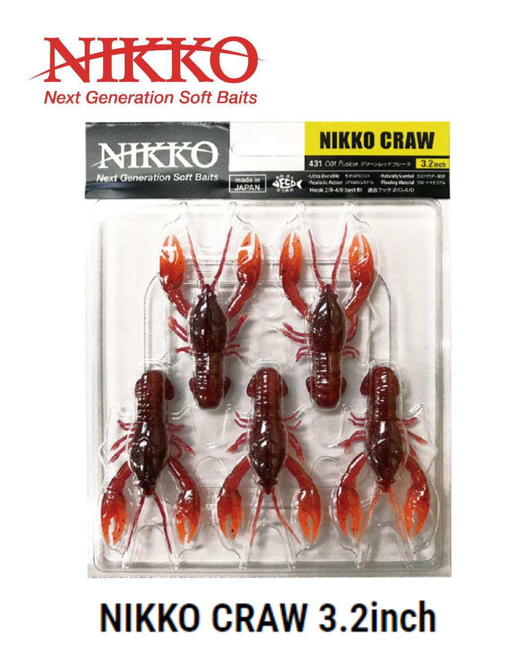 Nikko Craw’s ultra-realistic design with arched body angles and wide claw stance projects a vulnerable defensive posture at a new level of realism. The slit along the top accommodates a wide range of offset hooks for weedless presentations. Nikko’s proprietary super tough, floating material holds hooks firmly and will typically last many times longer than traditional plastics. Infused with all-natural fish attracting scents for added drawing power. From beginner to pro and catch after catch, super tough Nikko craws are a valuable addition to any tacklebox