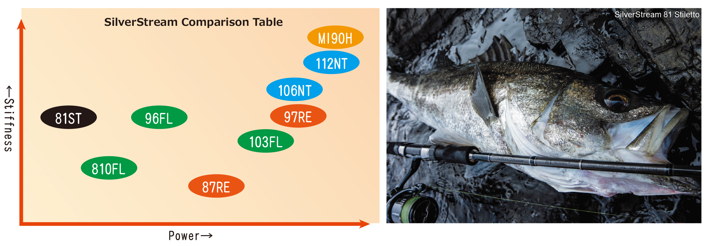 We have added 2 models, the “Northern” to target the sea trout and sea salmon in the SilverStream series, which were middle-class land-based rods to target seabass, flounders, and barramundis. 3 models in the Flows series to decipher the intricate current from its super sensitivity, 2 models in the Red-Eye series for the monstrous seabass and Akame (barramundi) and now the 2 new models in the Northern series for use with metal jigs or jig-minnows to target the sea trout or sea salmon consist of our SliverStream lineup. There is no power class in the series, and all have unique characteristics for the different species but there is one thing in common. That is the absolute butt power to deal with the lunker size targets. The SilverStream series are models which will perform to their limits depending on the anglers’ needs and usage.