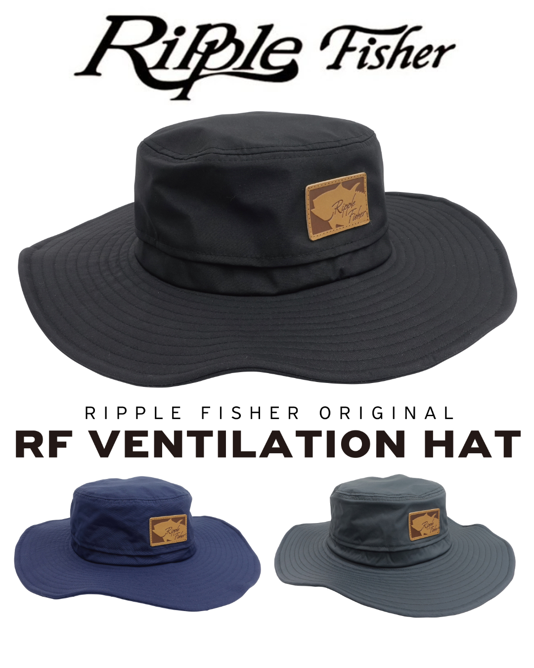 The RF Ventilation Hat has a simple design with an original leather tag and is available in three colors.