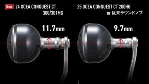 The width of the body of the NEW OCEA CONQUEST has been made 3mm more compact on the palming side. In addition, like the 22 OCEA CONQUEST 300, the small diameter side plate has been offset to reduce the height, further improving palming. The small and lightweight body fits in the palm of the hand and can be gripped in a natural form, reducing the angler’s fatigue even during long fights. The specifications allow you to fully experience the high-quality rotation feel and high winding power of the OCEA CONQUEST. Furthermore, the 200 size has been made 3.9mm more compact on the palming side, and the height from the leg has been made 2.3mm lower profile compared to the 18 OCEA CONQUEST 200. The weight has also been reduced by approximately 30g, greatly reducing the burden on the angler.
