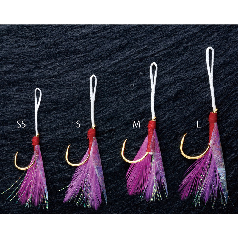 Shout Feather Jaco (301FJ) - Byte trigger ability! Good suction! Pink feather. Jaco hook has become a staple of inshore jigging due to its high bite-inducing ability and good suction during the bite. Equipped with a well-established feather aiming at blue objects on the Jaco hook. This feather Jaco was born in search of further appeal and inhalation. The hook is also built exclusively for Feather Jaco. By removing the twist, we got higher penetration....