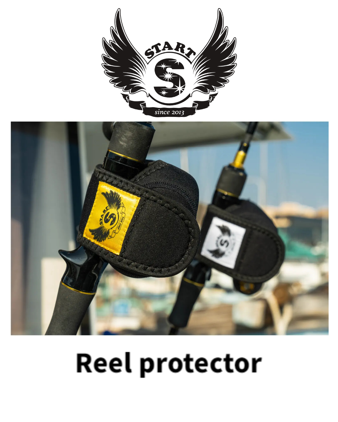 START Reel Protector - Neoprene reel protector to protect your precious reel from scratches   This is a START original reel protector made of thick neoprene material with a silver START logo print and a START feather logo name tag. *This product is for bait reel only. *The glitter of the silver print will fade as you use it, so please wash it lightly with water.   Example of S size size-compatible reel: Ossia Conquest 100-300 ENGETSU PREMIUM150HG/PG Ocean Jigger 1500 SALTIGA IC 300   Example of M size size-compatible reel: Ossia Conquest 300~400 Ocean Jigger 2000 Seaborg 200J SALTIGA35...