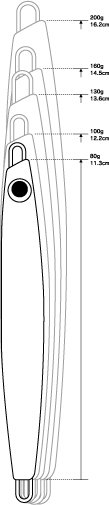 A slide-type metal jig that supports blue jigging in the coastal waters. Since it is asymmetrical but center-balanced, after jerk, it enters a peculiar wide-angle slide motion and creates the timing of feeding blue objects. At the time of fall, it is possible to get on the tide and appeal to a wide range by generating irregular flat action. It supports various jerk variations from one-pitch jerk to technical jerk actions such as Hirado jerk, Tango jerk, and low response jerk. In addition to just sliding, the slide width can be finely adjusted by changing the rod condition and line system. When the tackle and jig settings match, explosive fishing results await.