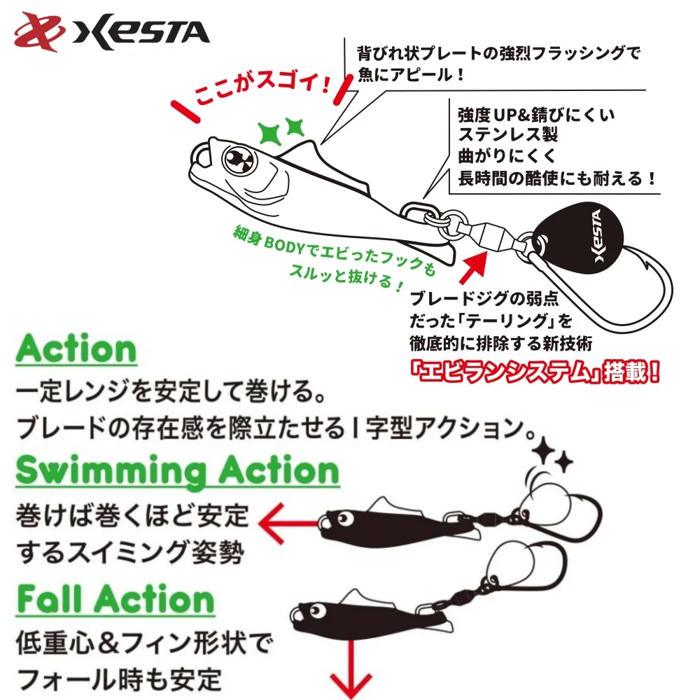 With an I-shaped action that keeps little shaking even when reeling at high speed and the powerful flashing of the blade, it can be used to catch a wide range of fish, from bluefish to rockfish and red sea bream.
